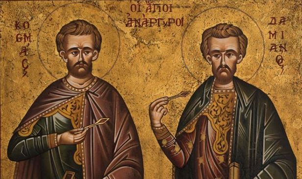 Οι δίδυμοι Άγιοι Κοσμάς και Δαμιανός υπήρξαν γιατροί και μάρτυρες της ορθοδοξίας γιοί της Θεοδότης.