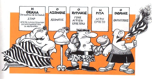 Μόνο ένα από τα πρωτότυπα, επίκαιρα και ξεκαρδιστικά του δημιουργήματα, θα ήταν αρκετό για να τον καταστήσει κορυφαίο σκιτσογράφο. Με χιούμορ, σαρκασμό, αλλά κυρίως με σοφία, προσεγγίζει τη ζωή μέσα από τον κόσμο που έπλασε, ο οποίος σε τελική ανάλυση, είναι η πραγματικότητα με τον σαρκασμό που πρέπει.