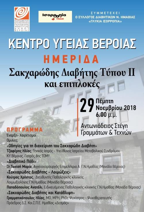 Βέροια Εκδηλώσεις Ημερίδα για τον Σακχαρώδη Διαβήτη τύπου ΙΙ από το Κέντρο Υγείας Βέροιας Faretra.info 21/11/2018, 19:06 Share on Facebook Share on Twitter Send with mail Φαρέτρα Κέντρο Υγείας Βέροιας σακχαρώδης διαβήτης ΣΧΕΤΙΚΑ ΑΡΘΡΑ Δεν υπάρχουν σχετικά άρθρα.