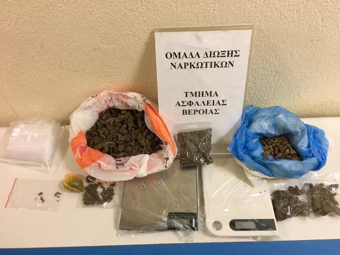 Συνελήφθησαν χθες (21 Νοεμβρίου 2018) το απόγευμα στην Βέροια, από αστυνομικούς της Ομάδας Δίωξης Ναρκωτικών του Τμήματος Ασφάλειας Βέροιας, 2 ημεδαποί ηλικίας 50 και 58 ετών, καθώς στην κατοχή του 58χρονου βρέθηκε και κατασχέθηκε ποσότητα κάνναβης βάρους 29 γραμμαρίων, την οποία είχε προμηθευτεί νωρίτερα από τον 50χρονο. Σε έρευνα που πραγματοποιήθηκε στην οικία του 50χρονου βρέθηκαν και κατασχέθηκαν ποσότητα κάνναβης βάρους 310 γραμμαρίων, 21 σπόροι κάνναβης, 2 ηλεκτρονικές ζυγαριές ακριβείας και 60 κενές νάιλον συσκευασίες.