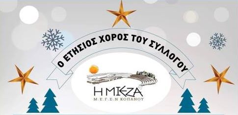 Το Δ/Σ του Μορφωτικού Σύλλογου «Η ΜΙΕΖΑ» Κοπανού, με χαρά σας προσκαλεί στον ετήσιο χορό που θα πραγματοποιηθεί στο ΚΤΗΜΑ-ΓΚΑΝΤΙΔΗ, το Σάββατο 8 Δεκεμβρίου 2018 και ώρα 21:00.