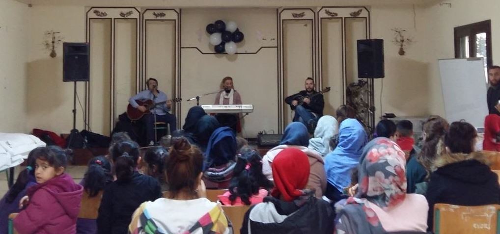 Η κοινωνική λειτουργός του Συλλόγου Ολυμπία Λαζαρίδου, με την βοήθεια μεταφραστή, αναφέρθηκε επιγραμματικά στους σκοπούς του Έρασμου, που ενθαρρύνει και προστατεύει γυναίκες οι οποίες έχουν υποστεί βία, ώστε να σπάσουν την σιωπή τους και να αποδράσουν από το κακοποιητικό περιβάλλον. Επιστρατεύοντας τη διεθνή γλώσσα των ήχων η μουσική τριάδα, Κατερίνα Σωτηρίου αρμόνιο- τραγούδι, Κωστής Χαλάτσης κιθάρα- τραγούδι και Δημήτρης Κύρτσος μπουζούκι, διασκέδασαν μικρούς και μεγάλους. Ιδιαίτερα συγκινητική ήταν η στιγμή που μητέρες μαζί με τα παιδιά τους σηκώθηκαν να χορέψουν προσπαθώντας να μιμηθούν τα βήματα παραδοσιακών ελληνικών χορών. Στη συνέχεια οι φιλοξενούμενου πρόσφυγες είχαν την ευκαιρία να δοκιμάσουν εδέσματα που πρόσφεραν χορηγοί και άλλα που παρασκεύασαν μέλη και φίλες του Έρασμου.