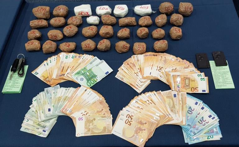 Σε έρευνα που ακολούθησε σε όχημα που χρησιμοποιούσε, εντοπίστηκαν καλά κρυμμένες σε εσωτερική κρύπτη του οχήματος, συσκευασίες με κοκαΐνη συνολικού βάρους 2 κιλών και 85 γραμμαρίων, ενώ σε έρευνα που έγινε στο σπίτι του βρέθηκε και κατασχέθηκε το χρηματικό ποσό των 2.200 ευρώ.