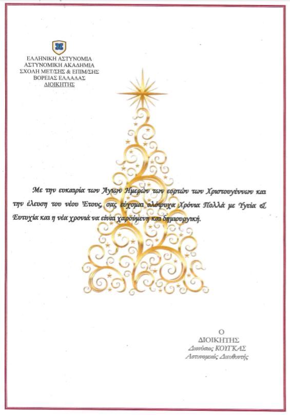 Αστυνομικό Δελτίο Βέροια Χριστουγεννιάτικες ευχές από τον Διοικητή Σχολής Μετεκπαίδευσης και Επιμόρφωσης Ελληνικής Αστυνομίας Βόρειας Ελλάδας Faretra.info 17/12/2018, 10:15 Share on Facebook Share on Twitter Send with mail Φαρέτρα Διονύσιος Κούγκας Σχολή Αστυνομίας Χριστουγεννιάτικες ευχές ΣΧΕΤΙΚΑ ΑΡΘΡΑ Δεν υπάρχουν σχετικά άρθρα.