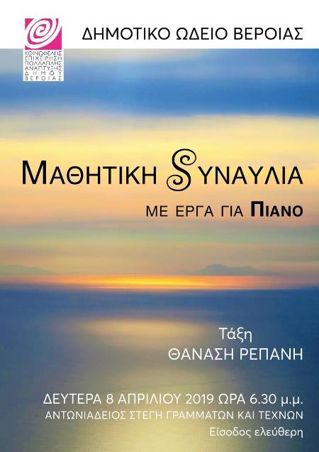 Σειρά συναυλιών μαθητών του Δημοτικού Ωδείου Βέροιας για τον μήνα Απρίλιο