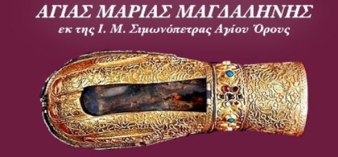 Την Τρίτη 9 Απριλίου στις 6:00 μ.μ. στο Μέγα Απόδειπνο στον Ιερό Ναό Αγίου Λουκά του ιατρού στην Ιερά Μονή Παναγίας Δοβρά Βεροίας θα τεθεί σε προσκύνηση το Ιερό Λείψανο της Χειρός της Αγίας Μαρίας της Μαγδαληνής και Τεμάχιο Τιμίου Ξύλου από την Ιερά Μονή Σίμωνος Πέτρας Αγίου Όρους.