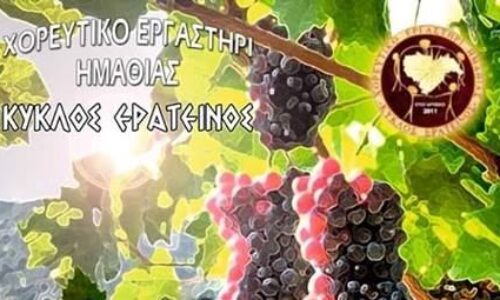Το Χορευτικό Εργαστήρι Ημαθίας «Κύκλος Ερατεινός» προσκαλεί στην μουσικοχορευτική του παράσταση που είναι αφιερωμένη στο αμπέλι και έχει τίτλο «Αμπέλι μου πλατύφυλλο», που θα πραγματοποιηθεί την Παρασκευή 10 Μαΐου 2019 και ώρα 21.00, στον Χώρο Τεχνών Βέροιας.