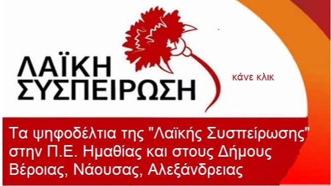 Τα ψηφοδέλτια της “Λαϊκής Συσπείρωσης” στην Π.Ε. Ημαθίας και στους Δήμους Βέροιας, Νάουσας, Αλεξάνδρειας