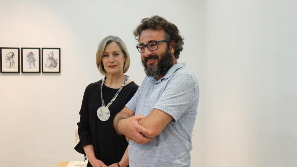 Την προηγούμενη φορά εξέθεσε μαζί με γλυπτά των μαθητών του σε συλλογική έκθεση που είχε εντυπωσιάσει και τώρα δείχνει τη δική του δουλειά – σχέδια και γλυπτά – που επιδέχεται πολλαπλές ερμηνείες.