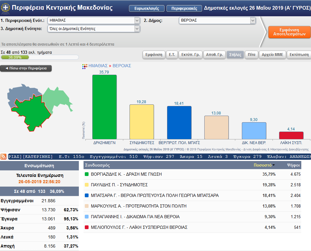 Βέροια Δημοτικές Εκλογές 2019: Δήμος Βέροιας αποτελέσματα στα 48 από τα 133 ε.τ. ώρα: 11:03 Faretra.info 26/05/2019, 23:05 Share on Facebook Share on Twitter Send with mail Φαρέτρα ΣΧΕΤΙΚΑ ΑΡΘΡΑ Δεν υπάρχουν σχετικά άρθρα.