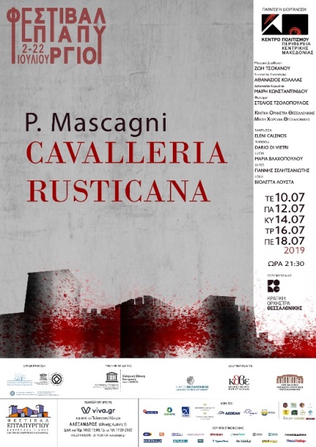 Το αριστούργημα του Pietro Mascagni «Cavalleria Rusticana» αποτελεί κεντρική παραγωγή του Φεστιβάλ Επταπυργίου, σε συνεργασία με την Κρατική Ορχήστρα Θεσσαλονίκης. Πρόκειται για μια συναρπαστική θεματικά Όπερα, που γοητεύει ακόμα και σήμερα το κοινό με τον ρεαλισμό της και τα δυνατά συναισθήματα που γεννάει. Γράφτηκε στα 1889 βασισμένη στο έργο του Τζιοβάνι Βέργκα και αποτελεί πλέον έργο ρεπερτορίου σε όλα τα μεγάλα λυρικά θέατρα.