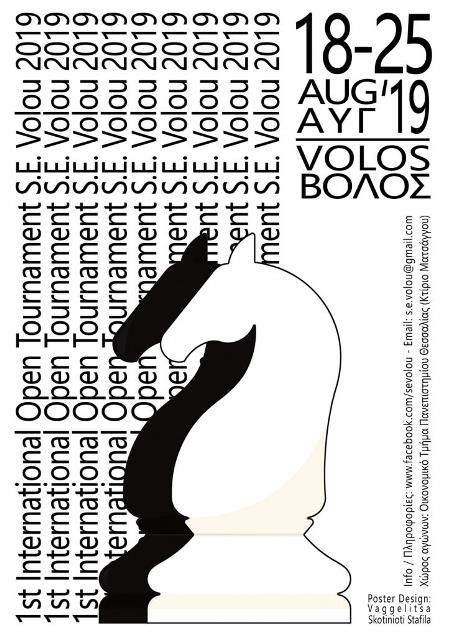 Μετά την επιτυχημένη διοργάνωση του Χριστουγεννιάτικου τουρνουά 2018, η Σκακιστική Ένωση Βόλου προχωρά στη διοργάνωση διεθνούς τουρνουά. Το «1ο Διεθνές ανοικτό ατομικό τουρνουά 2019 Σ.Ε. Βόλου 2019» με διεθνή (F.I.D.E.) και εθνική (Ε.Σ.Ο.) αξιολόγηση θα διεξαχθεί σε δυο ομίλους, από 18 έως 25 Αυγούστου 2019. Οι αγώνες θα φιλοξενηθούν σε αίθουσες του Οικονομικού Τμήματος του Πανεπιστήμιου Θεσσαλίας στο ανακαινισμένο κτίριο της παλιάς καπνοβιομηχανίας «Ματσάγγου» σε κεντρικότατο σημείο του Βόλου.