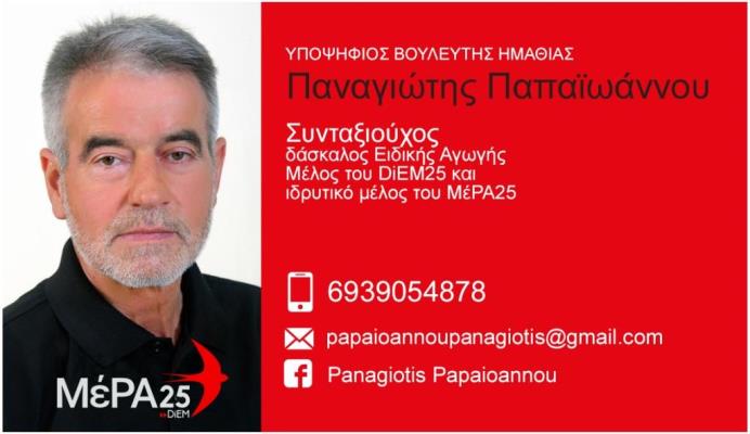 Υποψήφιος Βουλευτής Ημαθίας, ΜέΡΑ25