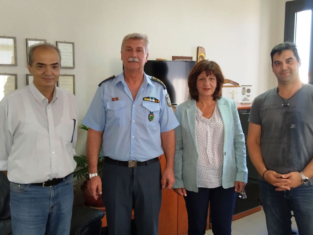 Επίσκεψη στην Αστυνομική Διεύθυνση Ημαθίας πραγματοποίησε την Παρασκευή η βουλευτής του νομού μας Φρόσω Καρασαρλίδου συνοδευόμενη από τον συντονιστή του ΣΥΡΙΖΑ Ημαθίας Αναστάσιο Κωστόπουλο. Στη συνάντηση παραβρέθηκε και ο πρόεδρος της Ένωσης Αστυνομικών Υπαλλήλων ν. Ημαθίας κ. Απόστολος Μούρτης. Η βουλευτής συνεχάρη τον αστυνομικό διευθυντή κ. Διονύσιο Κούγκα για την ανάληψη των νέων του καθηκόντων και του ευχήθηκε καλή δύναμη και δημιουργική θητεία. Στη συνέχεια συζήτησαν για την αστυνομική δύναμη του νομού σε ανθρώπινο δυναμικό και σε στόλο οχημάτων. Ο διευθυντής ενημέρωσε πως σύμφωνα με το οργανόγραμμα είναι καλυμμένες οι θέσεις. Ωστόσο θα πρέπει να γίνει επικαιροποίηση του οργανογράμματος διότι η Αστυνομική Διεύθυνση του νομού χρειάζεται περισσότερους αστυνομικούς, ενώ για το στόλο των οχημάτων είπε ότι είναι απαρχαιωμένος και αυτή τη στιγμή βρίσκεται σε κίνηση μόνο το 1/3 της δύναμης που διαθέτει. Ως προτάσεις τέθηκαν η απόκτηση νέων οχημάτων μέσω ΕΣΠΑ, από ιδιωτικές δωρεές και μέσω μακροχρόνιας μίσθωσης.