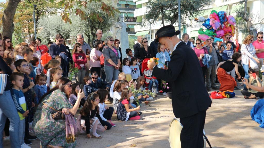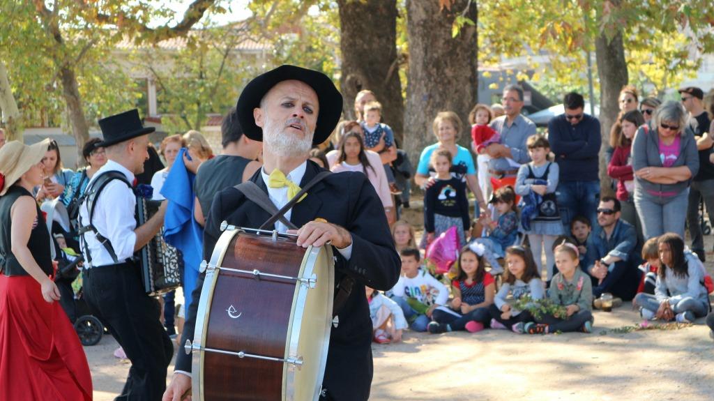 Ένα νοσταλγικό ακορντεόν, μια κιθάρα κι ένα τύμπανο έγιναν η μουσική συνοδεία των χορευτών-ηθοποιών, που έκαναν τα παιδιά να απολαύσουν μια άλλη διάσταση του θεάτρου, την πανάρχαια παντομίμα.