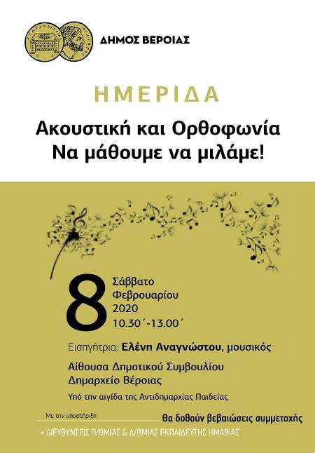Η Ημερίδα ακουστικής και ορθοφωνίας απευθύνεται σε γονείς, εκπαιδευτικούς και σε όσους εκθέτουν τον εαυτό τους στον δημόσιο λόγο.