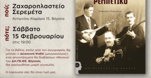 Παρουσίαση βιβλίου στη Βέροια: Ευάγγελος Πετρινιώτης “Προπολεμικό Ρεμπέτικο – Μ. Βαμβακάρης, Α. Δελιάς, Γ. Μπάτης”