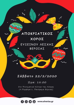 Για άλλη μια χρονιά το αποκριάτικο παιδικό πάρτι για τους μικρούς φίλους της Λέσχης θα πραγματοποιηθεί το Σάββατο 22 Φεβρουαρίου 2020 στο Πνευματικό Πολιτιστικό Κέντρο της Ευξείνου Λέσχης Βέροιας στο Πανόραμα.