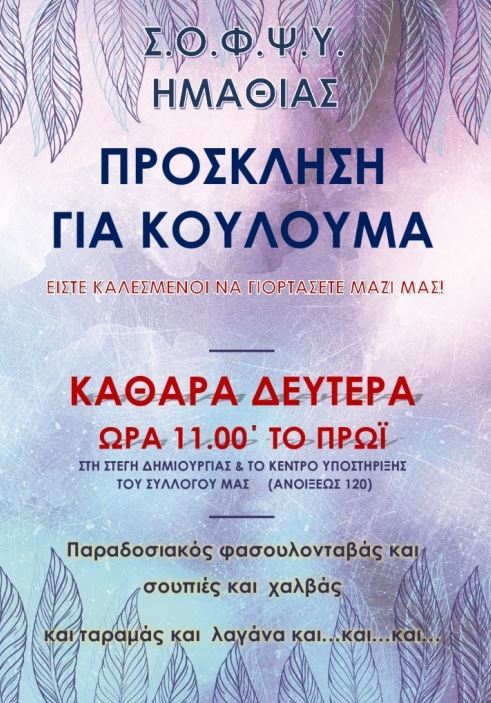 Βέροια Εκδηλώσεις ΣΟΦΨΥ Ημαθίας: Πρόσκληση για Κούλουμα Faretra.info 23/02/2020, 12:48 Share on Facebook Share on Twitter Send with mail Φαρέτρα Καθαρά Δευτέρα ΣΟΦΨΥ Ημαθίας ΣΧΕΤΙΚΑ ΑΡΘΡΑ Δεν υπάρχουν σχετικά άρθρα.