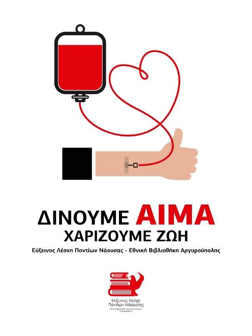 Η Εύξεινος Λέσχη Ποντίων Νάουσας – Εθνική Βιβλιοθήκη Αργυρουπόλεως «Ο Κυριακίδης», λόγω της σοβαρής μείωσης των αποθεμάτων αίματος που έχει προκαλέσει ο νέος κορωνοϊός και ανταποκρινόμενη στην έκκληση του Εθνικού Κέντρου Αιμοδοσίας, καλεί όλα τα μέλη και τους φίλους του σωματείου να προσφέρουν αίμα για την τράπεζα αίματος του συλλόγου.