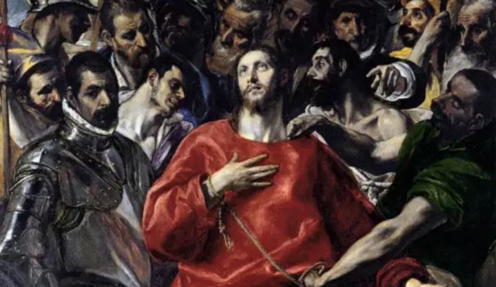 Ένας από τους πλέον διάσημους πίνακες του Ελ Γκρέκο. Απεικονίζει τον Ιησού να κοιτά ψηλά με μια ξεκάθαρη έκφραση γαλήνης την ώρα που οι περισσότεροι άνθρωποι γύρω του βιώνουν μια φανερή ένταση που φτάνει στα όρια της βίας. Τι προσπαθούν να κάνουν αυτοί οι άνθρωποι που τον ακολουθούν (να πάρουν τα ρούχα του); Γιατί τον κρατά από το σχοινί ο άνδρας με τα πράσινα ρούχα δεξιά (ετοιμάζεται να σκίσει τον μανδύα του Ιησού για να τον ετοιμάσουν για τη σταύρωση); Τι καρφώνει ο άλλος άνδρας με τα κίτρινα (προετοιμάζει το ξύλο ώστε να δεχτεί ευκολότερα το καρφί από τα πόδια του Ιησού);