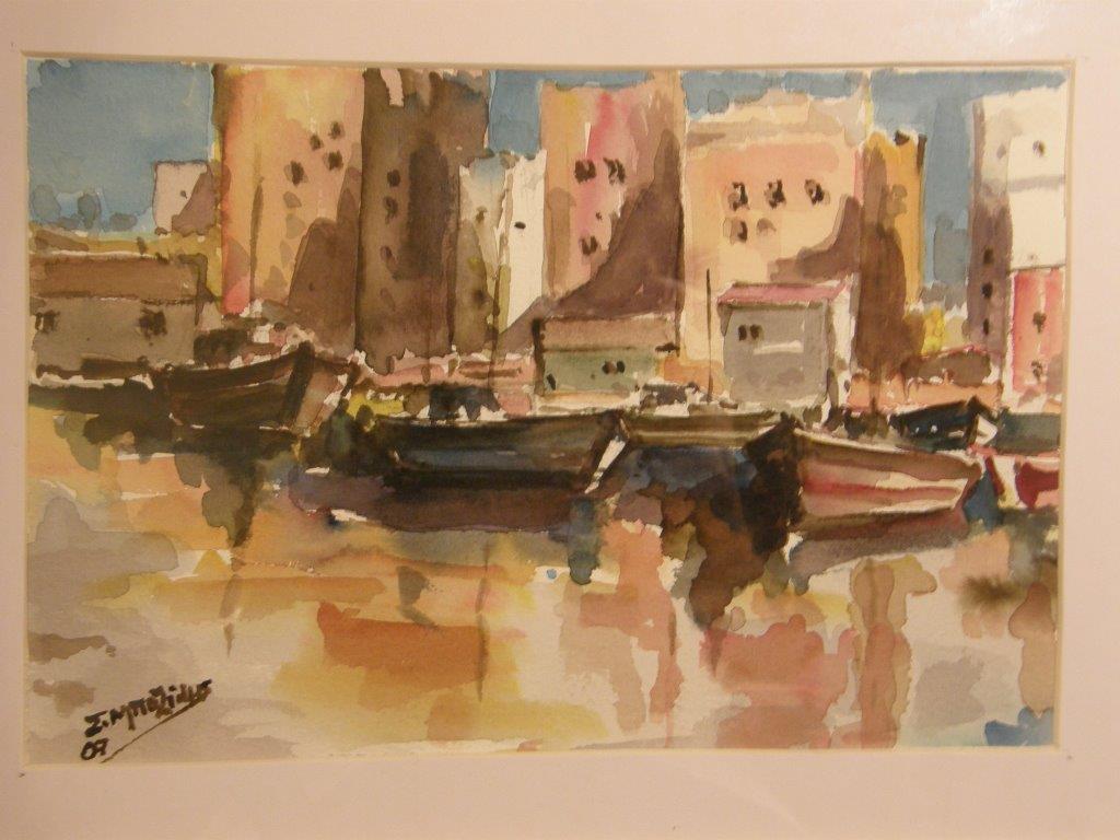 Από τον Στέργιο Μποζίνη πήραμε απόψε μια υδατογραφία, μαζί με τις πασχαλινές του ευχές, με θέμα το Ηράκλειο. Τα ζεστά γήινα χρώματα που χρησιμοποιεί και προπαντός η παλλόμενη κίνηση, διάχυτη σ’ όλο το θέμα, θέμα στατικό, δίνει τη δική του ματιά, με την οποία βλέπει τα πράγματα.