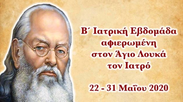 Κυριακή 31 Μαΐου 2020, 8.30 μ.μ. Μετάδοση του ορατορίου «Αγάπησα το μαρτύριο: Άγιος Λουκάς ο Ιατρός, των πασχόντων ιατρός και λιμάνι» – Λήξη Ιατρικής Εβδομάδος