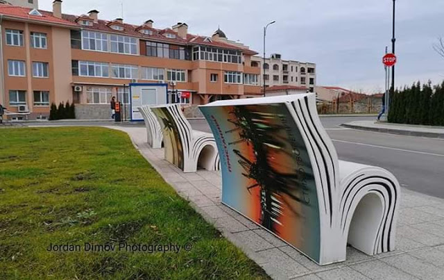 Αναγνώστρια της Φαρέτρας μάς έστειλε φωτογραφίες από τη γειτονική Βουλγαρία (δεν κατονομάζει από πια πόλη) με παγκάκια που έχουν τη μορφή βιβλίου.