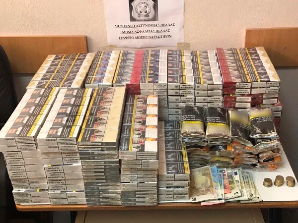 Συνελήφθη χθες (21 Ιουλίου 2020) το πρωί σε περιοχή της Πέλλας, από αστυνομικούς του Τμήματος Ασφάλειας Πέλλας, ημεδαπός άνδρας, καθώς σε έρευνα που πραγματοποιήθηκε σε αποθήκη που χρησιμοποιούσε, βρέθηκαν και κατασχέθηκαν 710 πακέτα τσιγάρων (δηλαδή 14.200 τεμάχια τσιγάρων) και 23 συσκευασίες καπνού των 50 γραμμαρίων η καθεμία, συνολικού βάρους 1 κιλού και 150 γραμμαρίων, τα οποία δεν έφεραν την ειδική ταινία φόρου κατανάλωσης του Δημοσίου και δεν είχαν καταβληθεί γι’ αυτά οι απαιτούμενοι φόροι και δασμοί. Επίσης στην κατοχή του βρέθηκε και κατασχέθηκε το χρηματικό ποσό των 205 ευρώ.