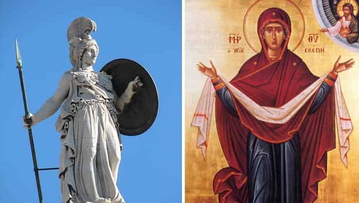 Χαρακτηριστική περίπτωση είναι η ισχυρή παρουσία της θεάς Αθηνάς στην αρχαιοελληνική θρησκεία και της Παναγίας στο Χριστιανισμό.