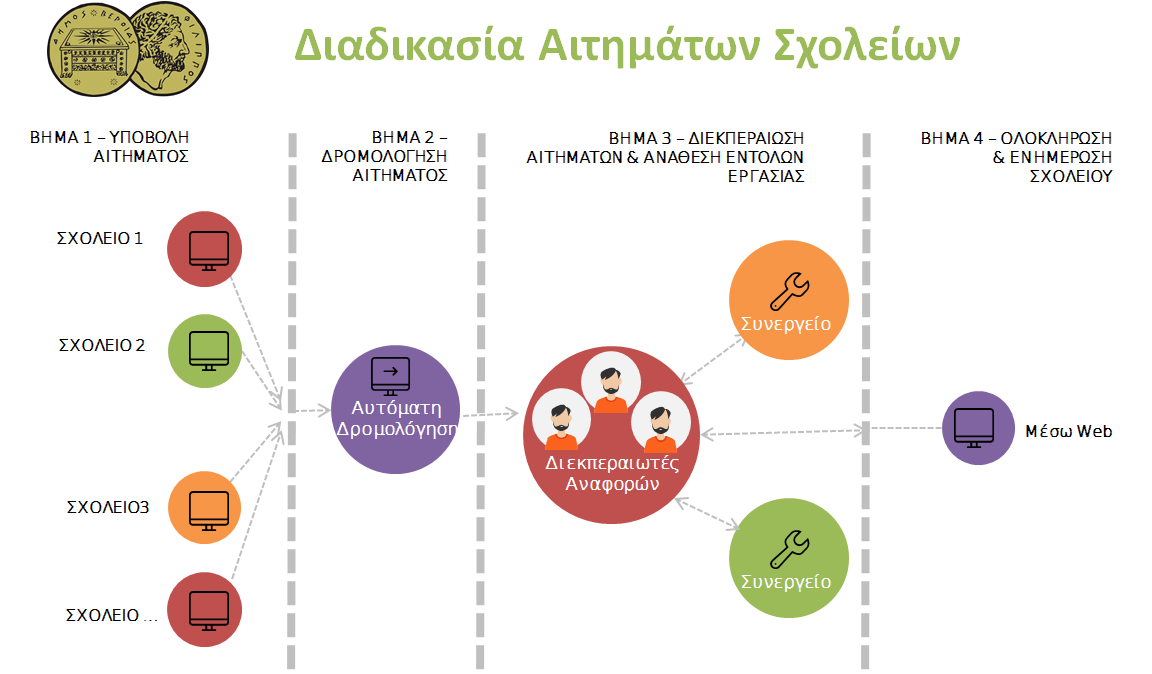 Μέσα από μια ιδιαίτερα απλή διαδικασία οι διευθυντές των σχολικών μονάδων μπορούν πλέον να υποβάλλουν όλα τα αιτήματα τους προς το Δήμο μέσω της σχετικής ηλεκτρονικής πλατφόρμας όπου θα έχουν επίσης τη δυνατότητα να ενημερώνονται για την πορεία διεκπεραίωσης των αιτημάτων τους σε πραγματικό χρόνο, χωρίς να χρειάζεται περεταίρω επικοινωνία με την αντίστοιχη δημοτική υπηρεσία, εξοικονομώντας πολύτιμο χρόνο από τη μείωση των μετακινήσεων και των τηλεφωνικών επαφών.
