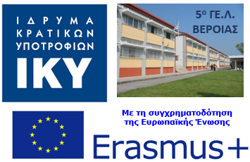 Με ιδιαίτερη χαρά σας ανακοινώνουμε ότι στο πλαίσιο του Ευρωπαϊκού Προγράμματος Erasmus+ 2020, στον Τομέα της Σχολικής Εκπαίδευσης, το 5ο Γενικό Λύκειο Βέροιας συμμετέχει και πάλι για την επόμενη διετία ως εταίρος σε τέσσερα (4) προγράμματα κινητικότητας εκπαιδευτικών και μαθητών.
