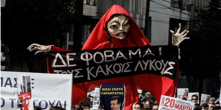 Δείτε φωτογραφίες από την πορεία των καλλιτεχνών στο κέντρο της Αθήνας, μέσα από το φακό της EUROKINISSI: