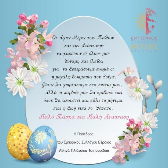 Βέροια Πασχαλινές ευχές από τον Εμπορικό Σύλλογο Βέροιας Faretra.info 28/04/2021, 08:32 Share on Facebook Share on Twitter Send with mail Φαρέτρα Πασχαλινές ευχές ΣΧΕΤΙΚΑ ΑΡΘΡΑ Δεν υπάρχουν σχετικά άρθρα.