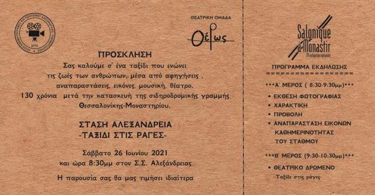 Αλεξάνδρεια Εκδηλώσεις Αλεξάνδρεια / Πρόσκληση: “Ταξίδι στις ράγες”, Σάββατο 26 Ιουνίου – Το πρόγραμμα των εκδηλώσεων Faretra.info 23/06/2021, 18:54 Share on Facebook Share on Twitter Send with mail ———— Φαρέτρα ΣΧΕΤΙΚΑ ΑΡΘΡΑ Δεν υπάρχουν σχετικά άρθρα.