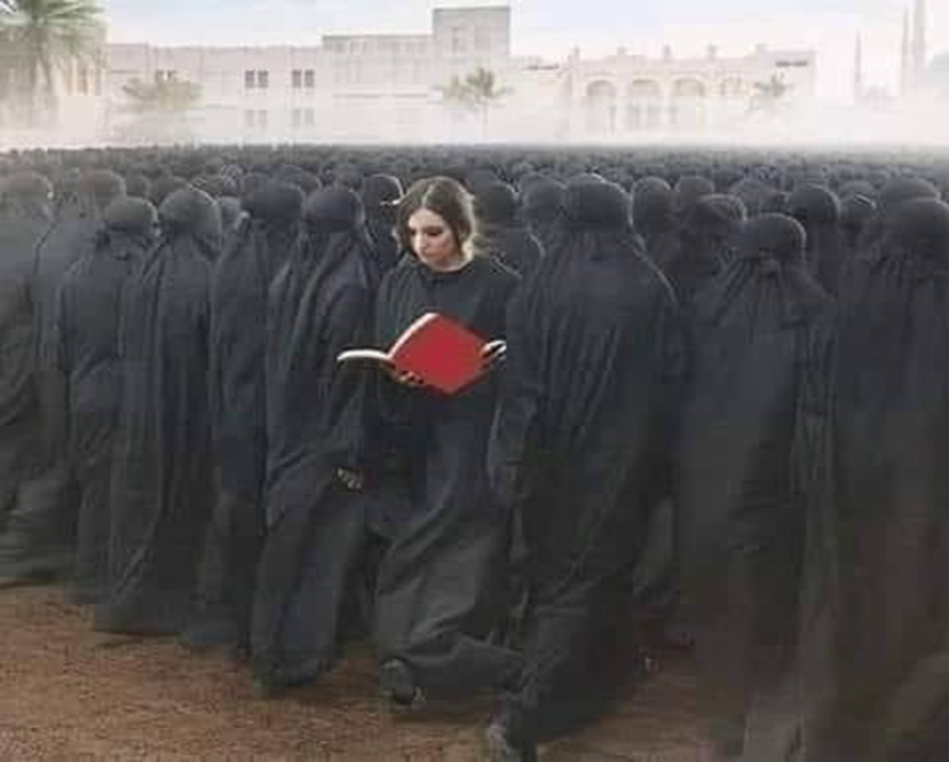 Μια Μπούρκα, για να σκεπαστούν τα τόσα αθώα θύματα που ανατινάχτηκαν σε δρόμους, πλατείες, δολοφονήθηκαν μέσα στα σπίτια τους, μπροστά στα μάτια των παιδιών τους, βρέθηκαν σε ομαδικούς τάφους, έγιναν θύματα από εκρήξεις, ρουκέτες, από βομβιστές εθελοντές αυτοκτονίας… Χρειάζεται η Μπούρκα, γιατί θέλει να αποκρύψει τον ετεροχρονισμένο Μεσαίωνα της εποχής μας σε γυναίκες και άνδρες των οποίων η θεοκρατική πίστη – κουλτούρα, είναι ριζωμένη στην άγνοια και τον τρόμο…