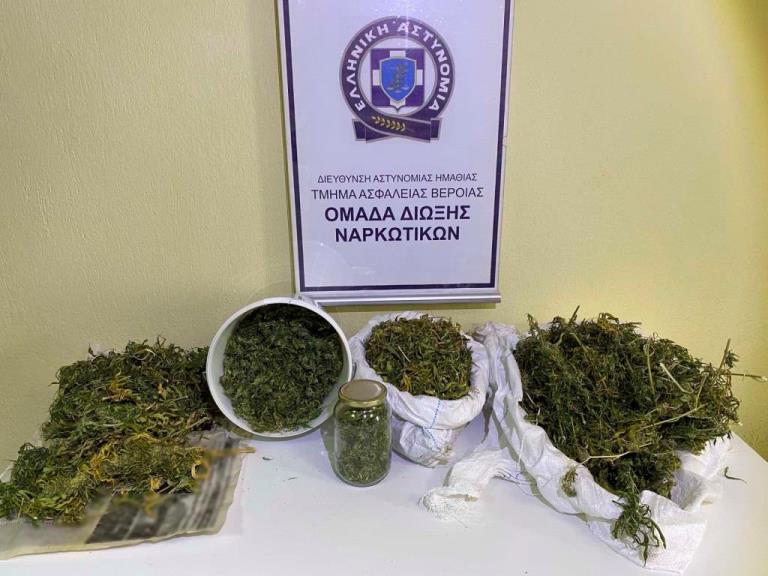 Συνελήφθη χθες (11 Οκτωβρίου 2021) το μεσημέρι σε περιοχή της Ημαθίας, από αστυνομικούς του Τμήματος Ασφάλειας Βέροιας, ένας ημεδαπός άνδρας, καθώς σε έρευνα που έγινε σε οικία και αποθήκη που χρησιμοποιούσε, βρέθηκαν και κατασχέθηκαν 1.510 γραμμάρια φυτικών αποσπασμάτων κάνναβης, 347 γραμμάρια κάνναβης και ένα κυνηγετικό όπλο, χωρίς να κατέχει την απαιτούμενη άδεια.