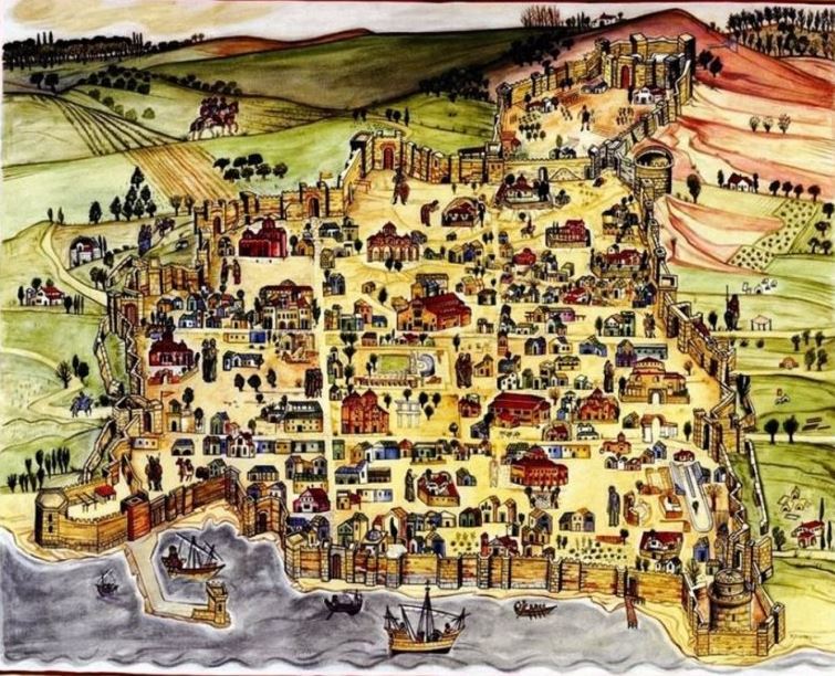 6ο: «Στράτα γαρ η εστρωμένη οδός Λατίνων καλείται φωνή.» (Ό.π., σ. 154).