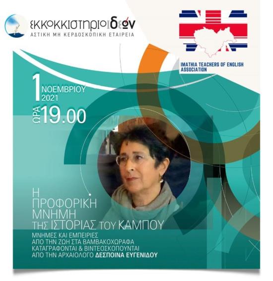 την Δευτέρα 1 Νοεμβρίου στις 19.00 στο ΕΚΚΟΚΚΙΣΤΗΡΙΟ ΙΔΕΩΝ στην παρουσίαση των βιντεοσυνεντεύξεων της Αρχαιολόγου Δέσποινας Ευγενίδου με θέμα:
