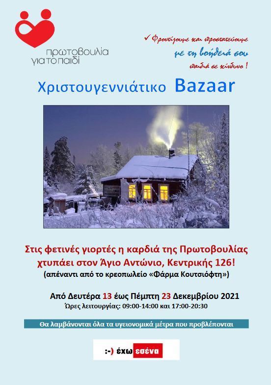 Βέροια Ειδήσεις με Διάρκεια Βέροια / “Πρωτοβουλία για το Παιδί”: Χριστουγεννιάτικο Bazaar, από 13 έως 23 Δεκεμβρίου Faretra.info 03/12/2021, 20:57 Share on Facebook Share on Twitter Send with mail Φαρέτρα Πρωτοβουλία Παιδί Χριστουγεννιάτικο bazaar ΣΧΕΤΙΚΑ ΑΡΘΡΑ Δεν υπάρχουν σχετικά άρθρα.