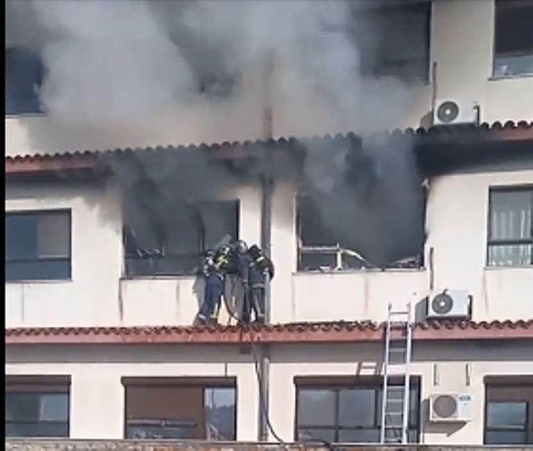Σύμφωνα με τις ίδιες πληροφορίες, ένας γιατρός και μία ειδικευόμενη έχουν εγκλωβιστεί στο γραφείο τους, ενώ στον διάδρομο υπάρχει πυκνός καπνός και δεν μπορούν να τους προσεγγίσουν.