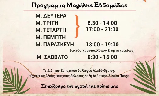 Αλεξάνδρεια Ειδήσεις με Διάρκεια Εμπορικός Σύλλογος Αλεξάνδρειας: Το πρόγραμμα της Μεγάλης Εβδομάδας Faretra.info 14/04/2022, 10:37 Share on Facebook Share on Twitter Send with mail Φαρέτρα Εμπορικός Σύλλογος Αλεξάνδρειας Μεγάλη Εβδομάδα ΣΧΕΤΙΚΑ ΑΡΘΡΑ Δεν υπάρχουν σχετικά άρθρα.