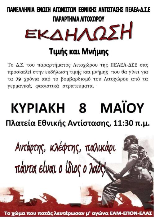 Εκδηλώσεις Ελλάδα ΠΕΑΕΑ-ΔΣΕ Λιτοχώρου: Εκδήλωση Τιμής και Μνήμης / 79 χρόνια από τον βομβαρδισμό του Λιτοχώρου Faretra.info 06/05/2022, 18:25 Share on Facebook Share on Twitter Send with mail Φαρέτρα βομβαρδισμοί Γερμανική Κατοχή Λιτόχωρο ΠΕΑΕΑ-ΔΣΕ Λιτοχώρου ΣΧΕΤΙΚΑ ΑΡΘΡΑ Δεν υπάρχουν σχετικά άρθρα.