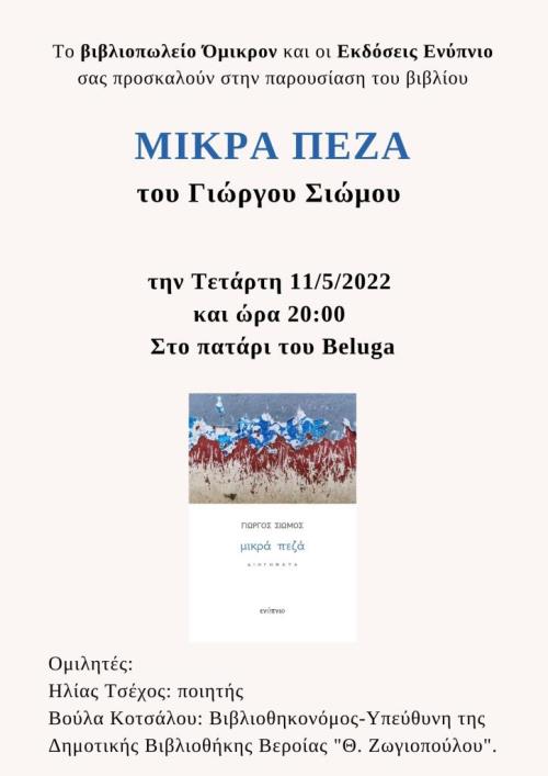 Βέροια Βέροια / Βιβλιοπαρουσίαση: Γιώργος Σιώμος “Μικρά Πεζά” | Τετάρτη 11 Μαΐου Faretra.info 11/05/2022, 13:30 Share on Facebook Share on Twitter Send with mail Φαρέτρα Βιβλίο ΣΧΕΤΙΚΑ ΑΡΘΡΑ Δεν υπάρχουν σχετικά άρθρα.