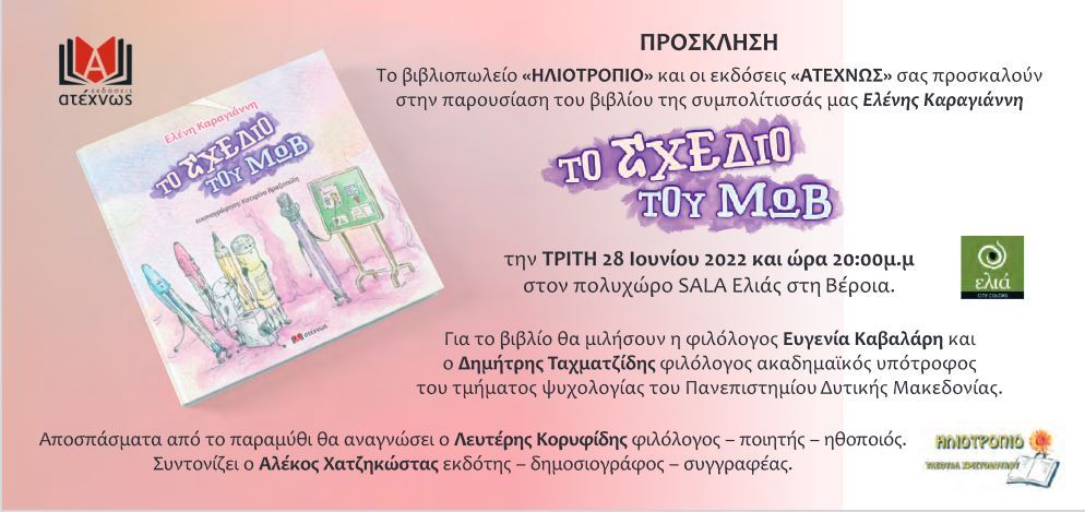 Βέροια Εκδηλώσεις Βέροια / Βιβλιοπαρουσίαση: Ελένη Καραγιάννη “Το Σχέδιο του Μωβ” | Τρίτη 28 Ιουνίου Faretra.info 27/06/2022, 17:04 Share on Facebook Share on Twitter Send with mail Φαρέτρα Βιβλιοπαρουσίαση ΣΧΕΤΙΚΑ ΑΡΘΡΑ Δεν υπάρχουν σχετικά άρθρα.