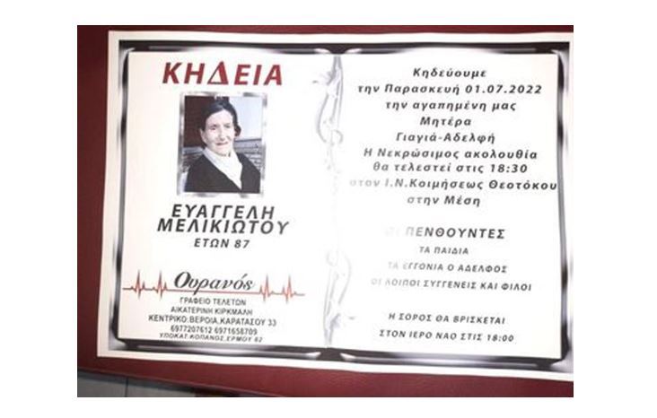Βέροια Κοινωνική ζωή Έφυγε από τη ζωή η Ευαγγελή Μελικιώτου Faretra.info 01/07/2022, 07:23 Share on Facebook Share on Twitter Send with mail Έφυγε από τη ζωή η Ευαγγελή Μελικιώτου, μητέρα της γνωστής γκαλερίστα Βίκυς Παπατζίκου – Μελικιώτου. Η Φαρέτρα εκφράζει τα θερμά της συλλυπητήρια στην κόρη της Βίκυ, και σ’ όλους τους πενθούντες συγγενείς. Φαρέτρα Ευαγγελή Μελικιώτου θάνατος Συλλυπητήρια ΣΧΕΤΙΚΑ ΑΡΘΡΑ Δεν υπάρχουν σχετικά άρθρα.