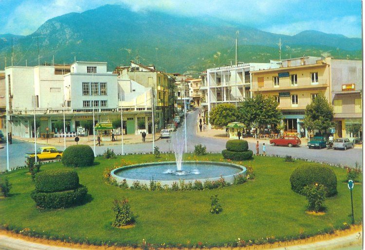 Η πλατεία Τρούμαν της Νάουσας (μετέπειτα Καρατάσου) όπως ήταν το 1964. Στο βάθος αριστερά διακρίνεται το κτίριο των αφών Κελεμουρίδη με το κινηματοθέατρο «ΑΓΓΕΛΙΚΑ». Από τον εξώστη του εκφωνούνταν, συνήθως, οι ομιλίες των πολιτικών κατά τις βουλευτικές ή αυτοδιοικητικές εκλογές