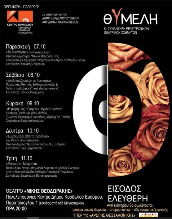 Δήμος Κορδελιού – Ευόσμου: 6η συνάντηση Ερασιτεχνικών Θεατρικών Σχημάτων “Θυμέλη” | Από 7 έως και 11 Οκτωβρίου