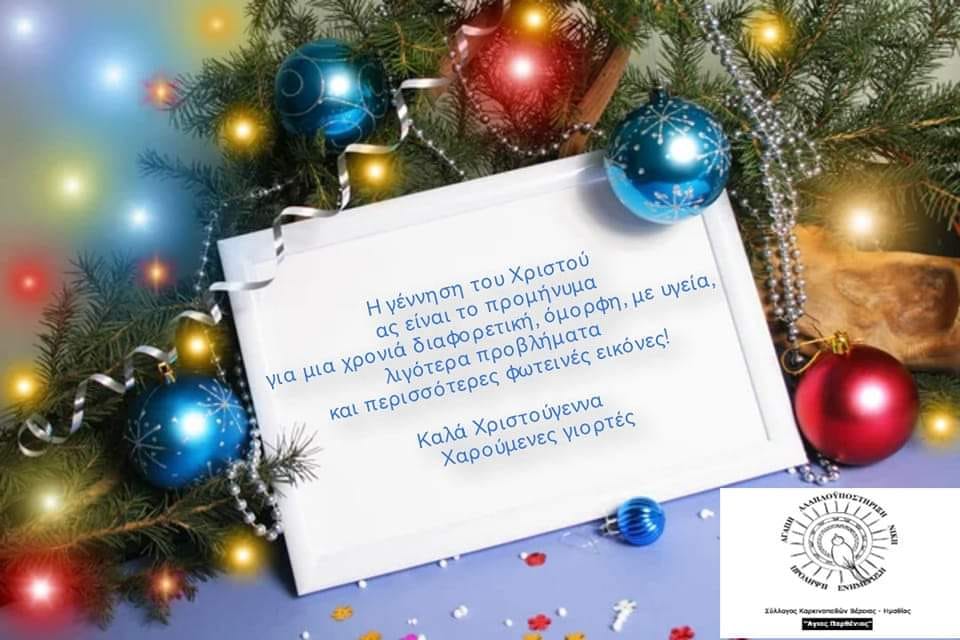 Το Διοικητικό Συμβούλιο του Συλλόγου μας, εύχεται Καλά Χριστούγεννα και ένα ευτυχισμένο 2023 σε όλους και πάντα με υγεία!!!