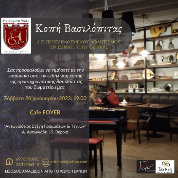 Πρόσκληση στην κοπή Βασιλόπιτας του “Εν Σώματι Υγιεί” Βέροιας | Σάββατο 28 Ιανουαρίου